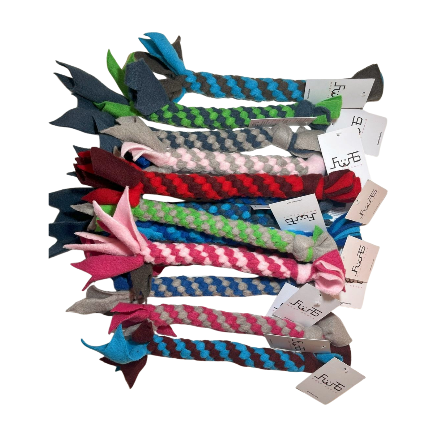 Kézzel készült, puha polárból font rágó- és húzójáték csavart fonással készül, hogy extra tartós és izgalmas legyen minden húzásra, rágásra vagy kergetőzésre.